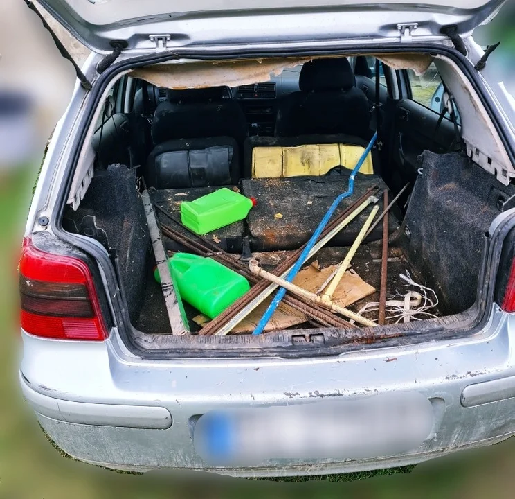 Mężczyzna widział, że sprzed posesji odjeżdża nieznane mu srebrne auto osobowe. Gdy policjanci dotarli na miejsce zgłoszenia, znaleźli zdemontowane i porzucone metalowe rurki. Natychmiast zaczęli szukać sprawcy. Na auto natknęli się na jednej z posesji w miejscowości Chociwek.W samochodzie mundurowi znaleźli identyczne metalowe rurki, co na posesji, na którą włamał się sprawca.