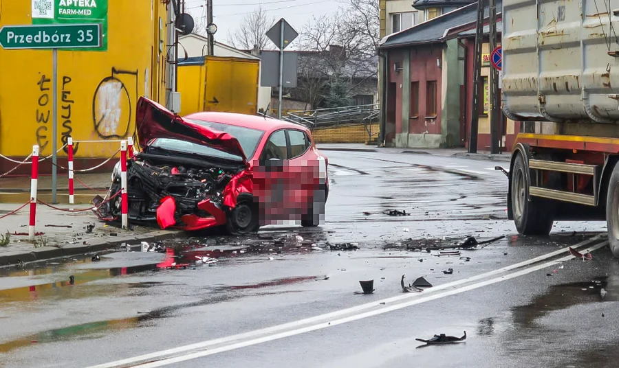 Ciężarówka zatrzymała się na przydrożnym słupie, z kolei rozbita osobówka wjechała w słupki oddzielające chodnik od ulicy. Niestety w zdarzeniu ranna została jedna osoba. Jak przekazuje Dariusz Kaczmarek, kierowca osobówki z obrażeniami nie zagrażającymi życiu został przewieziony do szpitala.