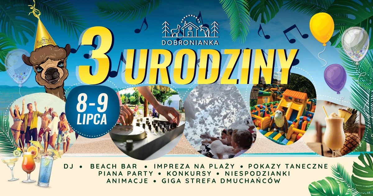 W najbliższy weekend odbędą sie huczne urodziny Dobronianki. Zaplanowano między innymi: giga strefę dmuchańców, towarzystwo Psiego Patrolu na posterunku z Pokemonem, piana party, malowanie buziek i wiele wiele innych. Strefa zoo otwarta do godziny 20:00.