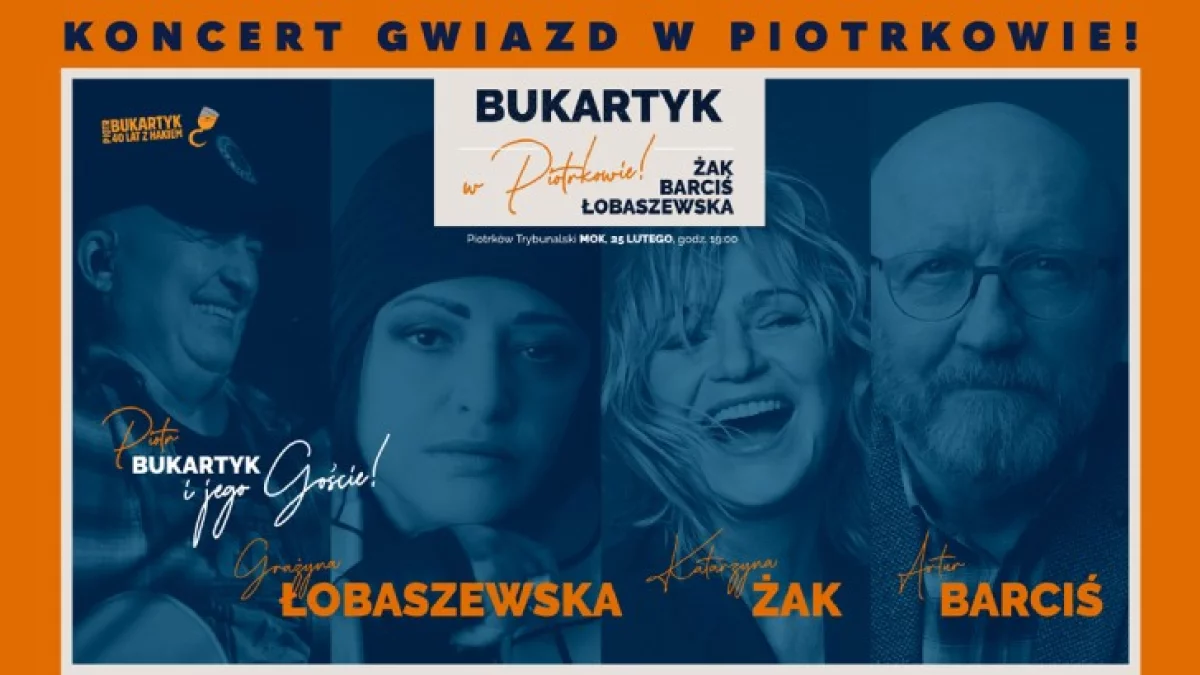 We wtorek, 25 lutego w Piotrkowie odbędzie się Spektakl koncertowy pt.: "Piotr Bukartyk - 40 lat z hakiem". Wydarzenie będzie miało miejsce w Miejskim Ośrodku Kultury i okazuje się, że do naszego miasta z tej okazji przyjedzie kilku artystów. Jak zapowiada Miejski Ośrodek Kultury, tego wieczoru Piotr Bukartyk wystąpi na scenie MOK w Piotrkowie Trybunalskim z gośćmi specjalnymi, czyli Grażyną Łobaszewską, Katarzyną Żak i Arturem Barcisiem. Koncert zaplanowany jest na godzinę 19:00, a bilety w cenie 110-160 zł są wciąż dostępne na stronie kupbilecik.pl.