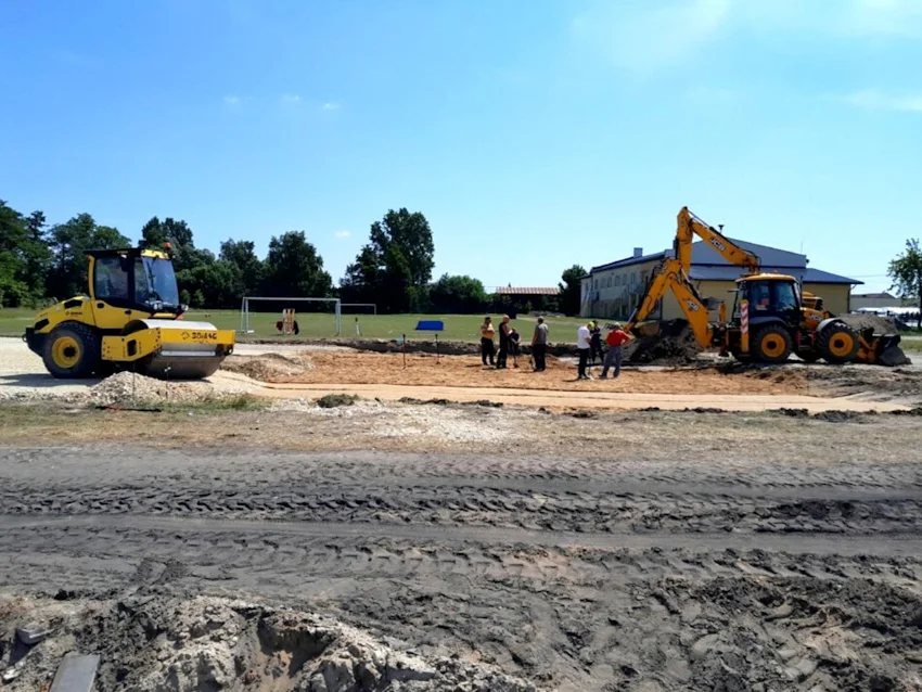 Pod koniec czerwca tego roku zakończyły się prace z podziemnymi instalacjami, tj. wodną, kanalizacyjną i elektryczną. Przebudowana została także napowietrzna linia elektroenergetyczna średniego napięcia oraz wykonane zostały wszystkie prace ziemne i podbudowy boiska do piłki nożnej, boiska wielofunkcyjnego i placu zabaw.
