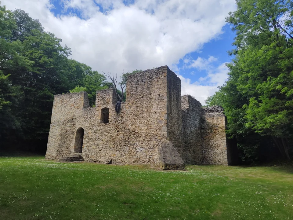Malownicza ruina za wsią to autentyczny zamek rycerskiego rodu, którego przedstawiciele mogli walczyć pod Grunwaldem. Rycerski ród osiadł w tej okolicy pod koniec XIV wieku. Siedzibę kamienną wzniesiono prawdopodobnie na początku wieku XV.