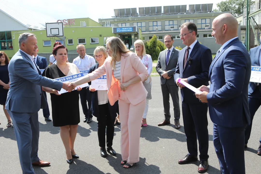 Wiceminister sportu i turystyki Arkadiusz Czartoryski oraz posłanka Małgorzata Janowska przekazali dyrektorom szkół symboliczne czeki na budowę dwóch hal sportowych w gminie Wolbórz. Nowe obiekty powstaną przy szkołach w Proszeniu i Komornikach. Gmina otrzymała na ten cel kwotę 3,3 mln zł.