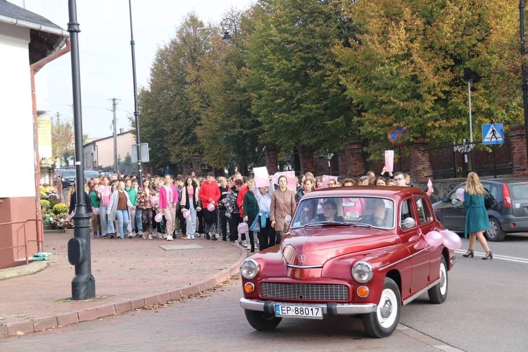 Wydarzenie rozpoczęła dyrektor szkoły Magdalena Tresińska-Niemczyk, która powitała zebrane osoby. Następnie wszyscy przemaszerowali z różowymi balonami i wpiętymi w ubrania różowymi wstążkami ulicami gminy.
