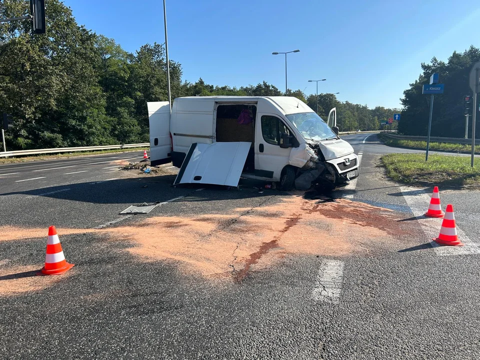 W czwartkowy poranek (28 września) przy wyjeździe w stronę Sulejowa doszło do zderzenia osobówki typu van i busa.