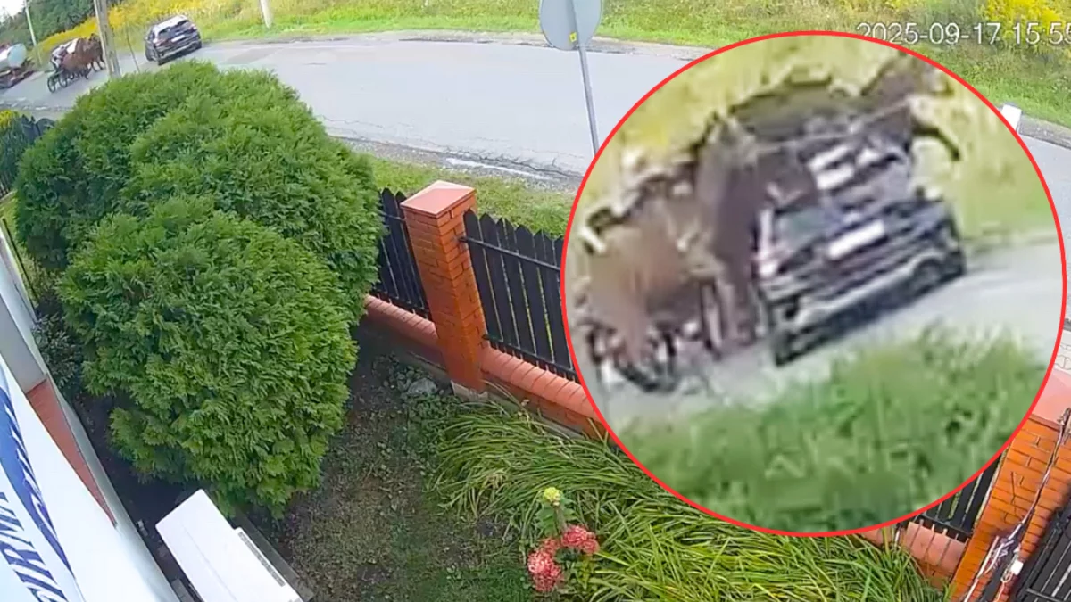 Konie wbiegły w samochód osobowy w Piotrkowie. Jest nagranie ze zdarzenia