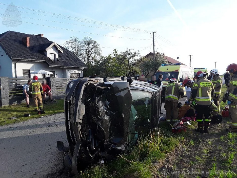 Samochodem osobowym podróżowały trzy osoby, w tym dwoje dzieci. Kierujący i pasażerka zostali przewiezieni karetką do szpitala w celu dalszych badań.