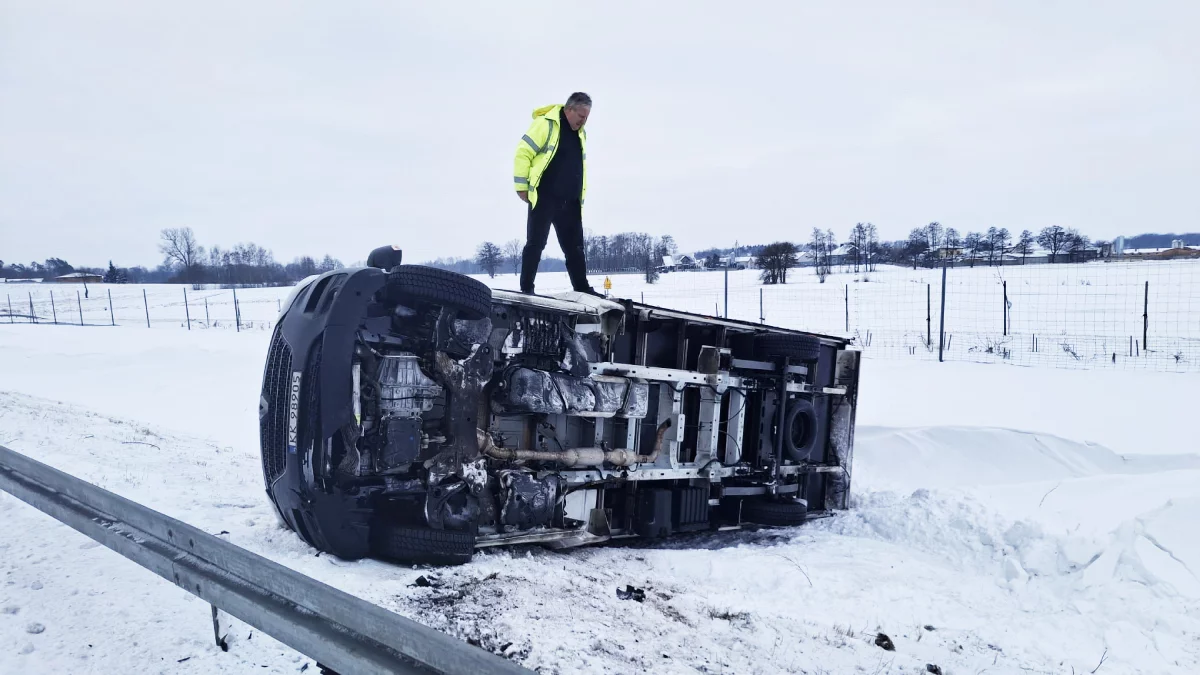 W poniedziałek, 12 stycznia około godz. 10:00 na autostradzie A1 na 339 km w m. Dąbrówka (powiat piotrkowski) doszło do groźnego zdarzenia drogowego. Kierowca pojazdu dostawczego uderzył w barierę energochłonną, a następnie wypadł z trasy i przewrócił sie na bok.