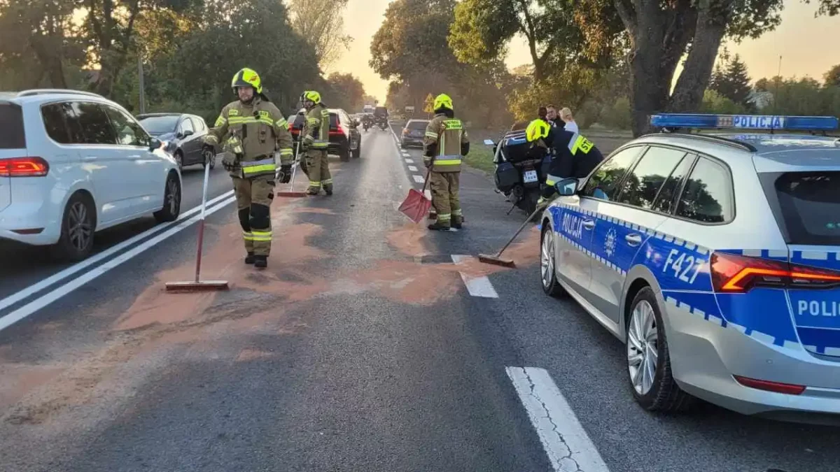 Jak informują służby, zderzyły się ze sobą samochód osobowy i motocykl. Na szczęście nikt nie został poszkodowany. Na miejsce wezwano policję i straż pożarną.