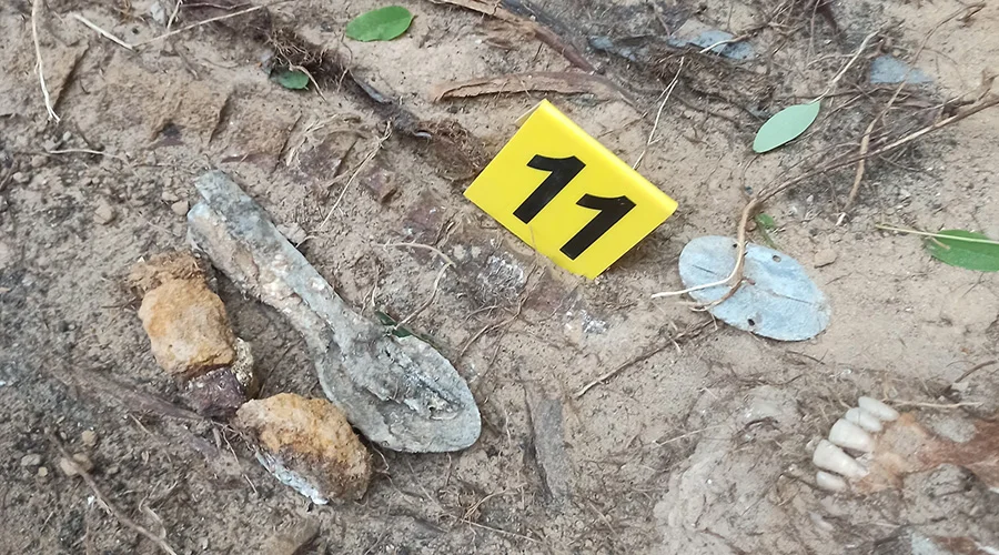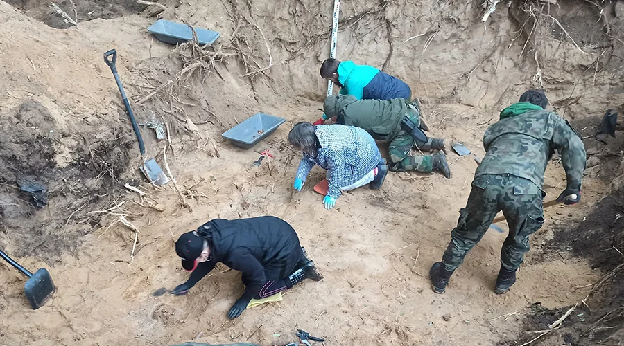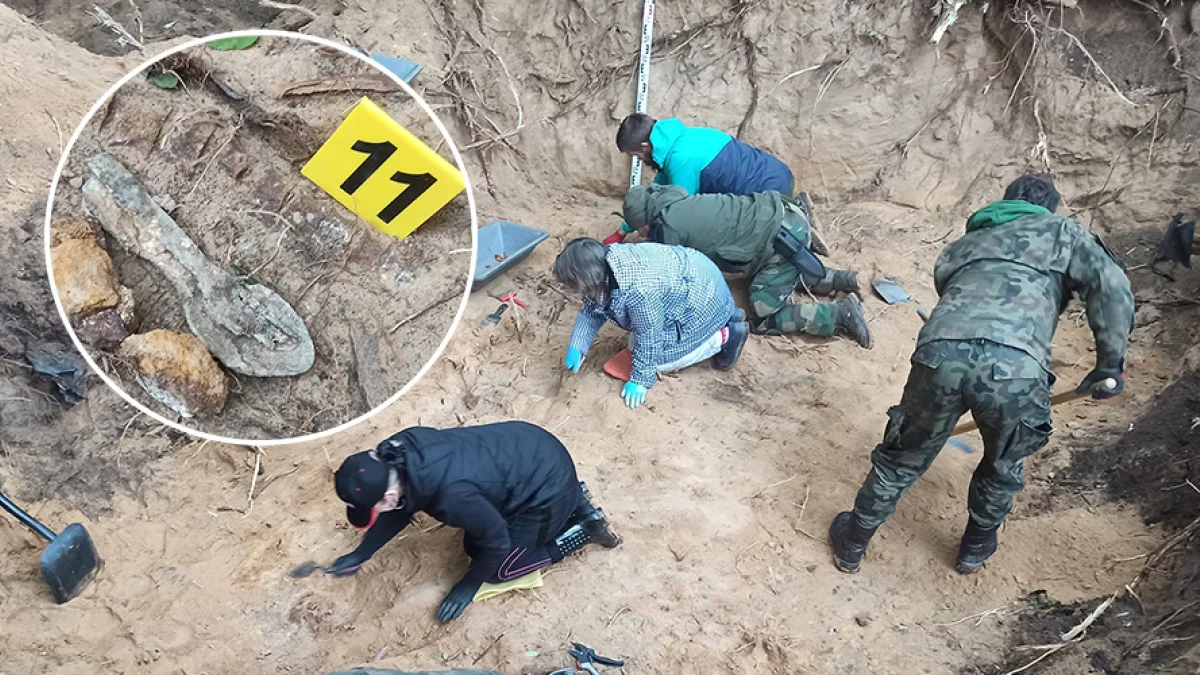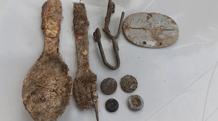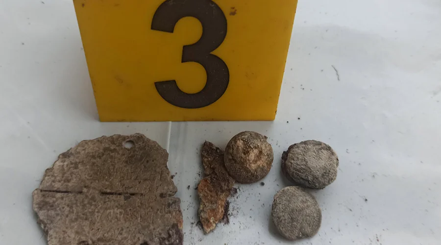 – Pomimo bardzo dużego zaśmiecenia i rozległego terenu poszukiwań (dawna żwirownia), udało nam się podjąć szczątki 12 żołnierzy niemieckich zabitych w styczniu 1945 roku. W jamie grobowej ujawniliśmy aż 9 nieśmiertelników. Co dość nietypowe jedynie trzy z nich nie były przełamane. Może to oznaczać, że pozostałych sześciu żołnierzy zostało zewidencjonowanych jako zabitych i znajdują się na listach poległych – przekazuje Grupa Poszukiwawcza.