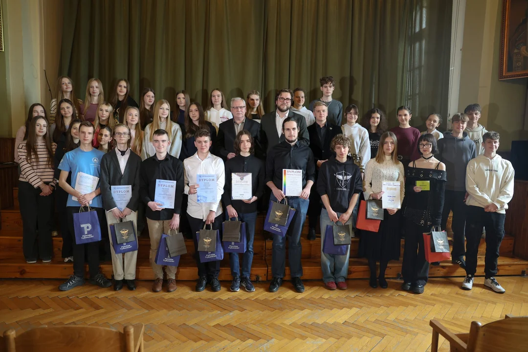 Wśród wyróżnionych znalazły się osoby, które odniosły sukcesy w dziedzinach, takich jak matematyka, geografia, język niemiecki, sztuczna inteligencja oraz fizyka. W trakcie wydarzenia wręczono im upominki, a gratulacje przekazali prezydent Piotrkowa Trybunalskiego, Juliusz Wiernicki oraz dyrektor szkoły, Henryk Michalski.