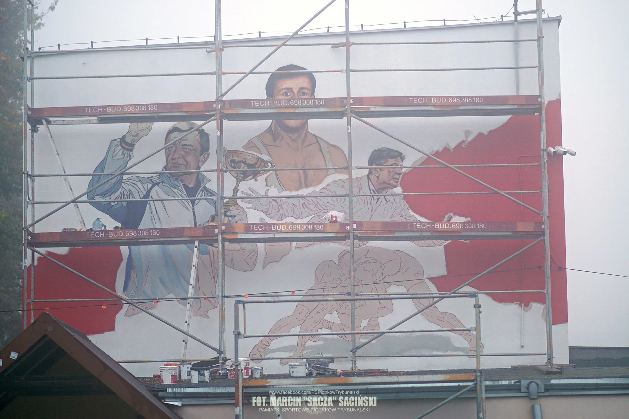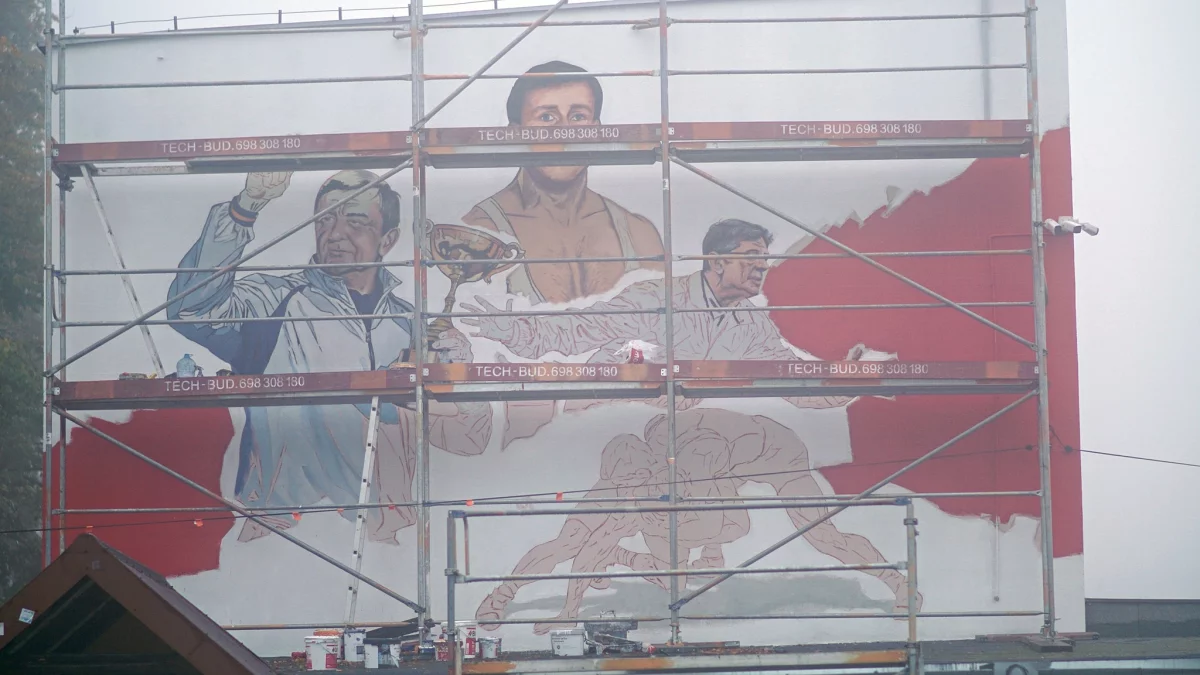 Ruszyła też realizacja serii murali przedstawiających piotrkowskich sportowców. Ma zostać ukończona w tym roku. Na pierwszym z trzech planowanych malowideł widać już wyraźnie sylwetki związanych z Piotrkowem zapaśników: Grzegorza Ludwiga, Henryka Grabowieckiego oraz Piotra Stępnia. Mural powstaje na ścianie SP nr 5 przy ul. Jerozolimskiej. Dziś na blogu Pamiątki Sportowe - Piotrków Trybunalski pojawiły się zdjęcia, przedstawiające tworzone malowidło.