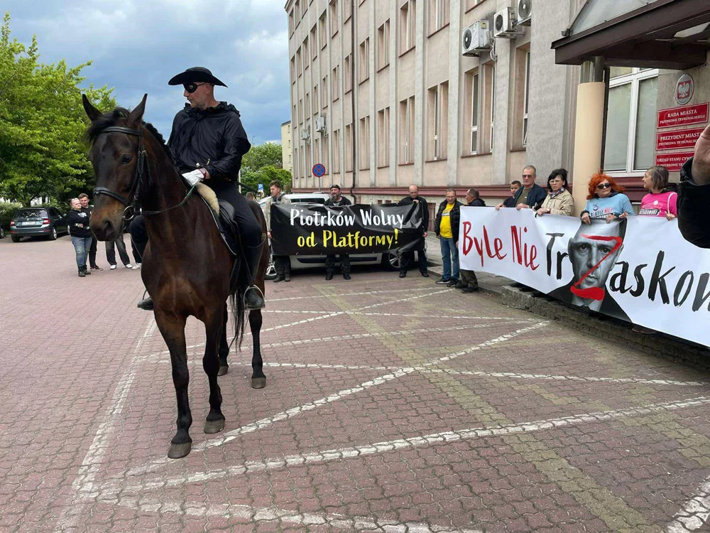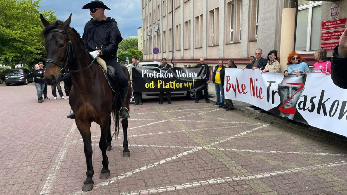 Wszystko zaczęło się tydzień temu w Tarnowie, gdzie wizytę złożył Rafał Trzaskowski. W trakcie wiecu na dachu jednej z kamienic, tuż obok miejsca w którym znajdował się polityk Koalicji Obywatelskiej, pojawił się mężczyzna przebrany właśnie za Zorro, który rozłożył transparent o treści "#ByleNieTrzaskowski". Napis został opatrzony przekreśloną karykaturą Trzaskowskiego na tle tęczy. Akcja tak się spodobała zwolennikom kontrkandydata, Karola Nawrockiego, że zaczęła być naśladowana w innych miastach, także w Piotrkowie. Podobno w naszym mieście pod maską Zorro ukrywał się prawicowy działacz, na co dzień mieszkaniec jednej z miejscowości leżącej nad Zalewem Sulejowskim.